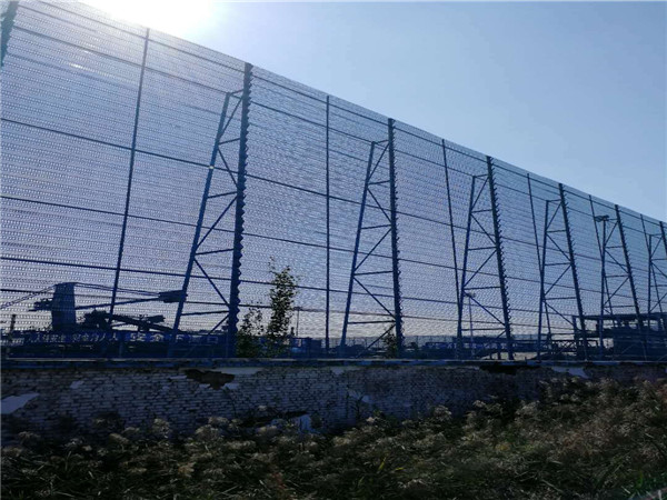 煤場防風抑塵網 露天煤場防風抑塵網又叫防風抑塵墻,擋風墻,抑塵墻,擋風抑塵墻。 材質:低碳鋼板、